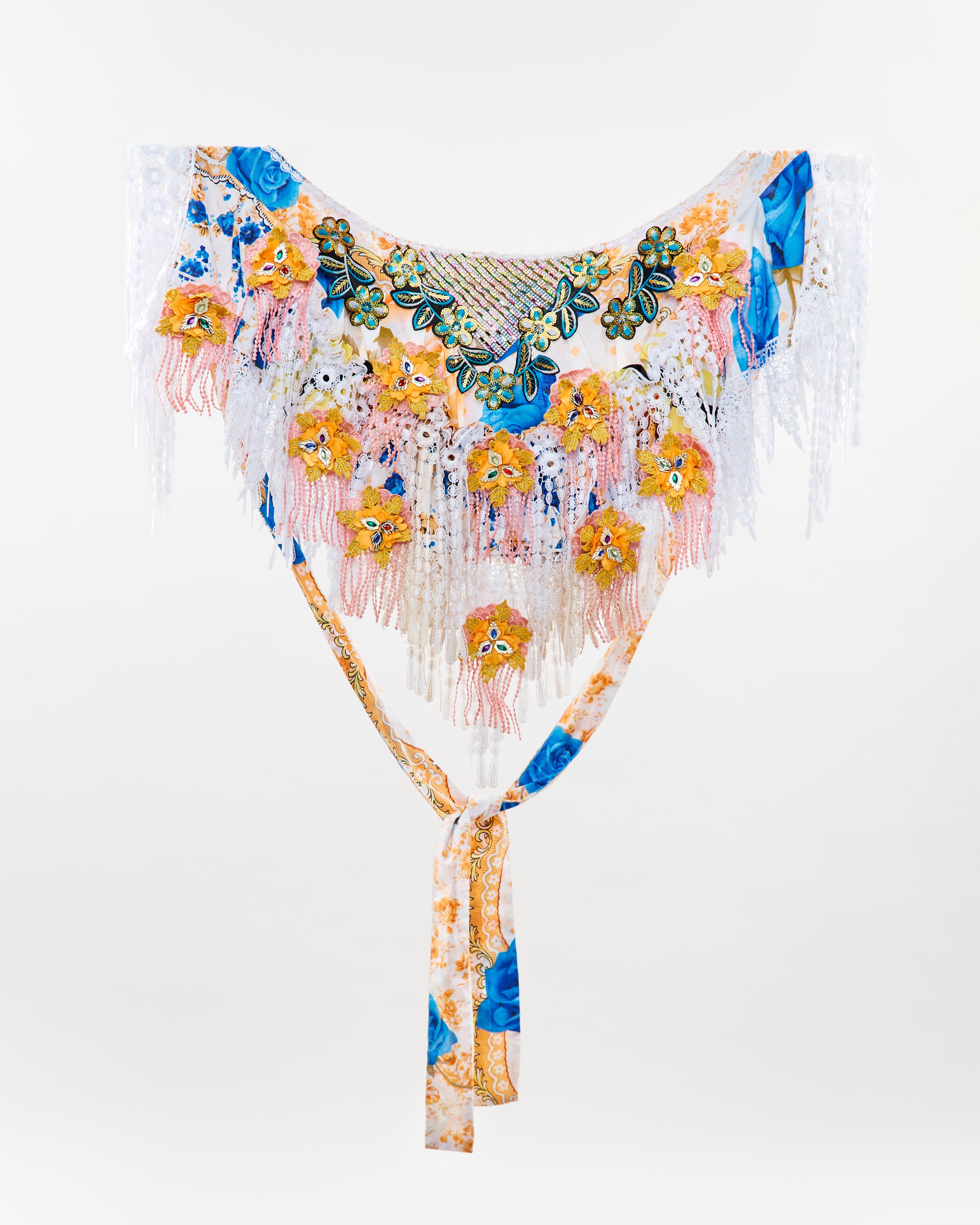 This apron is inspired by the workwear of Guatemalan market women, where the apron functions as both utility and personal expression. Our interpretation translates this everyday garment through colour compositions and layered embellishments, applied by hand through embroidery or heat-press techniques